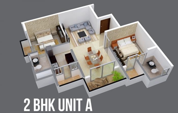 | 2 BHK 673 Sq. Ft. Apartment | 2 Bedrooms | ₹ . Ft. |