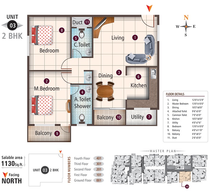 | 2 BHK 1130 Sq. Ft. Apartment | 1130 Sq. Ft.(Saleable) |