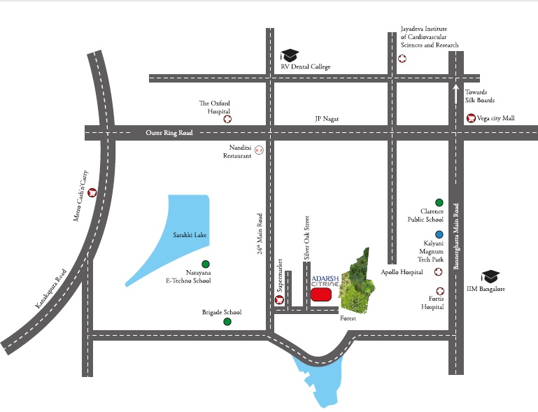 Adarsh Citrine is a premium residential project located in South Bangalore, Bangalore. The project offers a wide range of luxurious apartments from 1acres to 3acres with sizes ranging from 1335 sqft to 2085 sqft. The project is well connected to the Outer Ring Road and is close to Fortis Hospital. The project offers a great investment opportunity with a promising future.