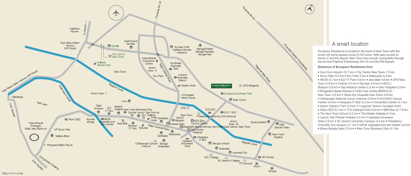 Ambujja Ecospace Residence is a luxurious, contemporary and stylish home that offers an enhanced accessibility for two key residential catchments of New Town and Rajarhat. It offers an upscale area having a well connected micro market, making it the perfect choice for those who are looking for a home that connects them with the largest IT hub of the city, in the shortest possible time. The project is well connected to Rajarhat Road, making it an ideal choice for those who want to live in an area that is constantly buzzing with activity.