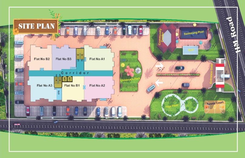 Aqama Paradise Palm, Lucknow North is a 66 unit project with 0.69 acres of land and 2 BHK to 3 BHK apartments ranging from 1096 sqft to 1517 sqft. The Floor Plan of Aqama Paradise Palm is as mentioned: