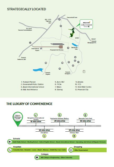 Brigade Orchards Deodar is a project located in North Bangalore, Bangalore. The project offers luxurious residences spread over 425 units and 130 acres. The project consists of 2 BHK-3 BHK apartments with sizes ranging from 1360 sqft to 1760 sqft. The project is located just few minutes drive from the Bangalore international Airport and is spread across 130 acres. The project is also close to the Yelahanka Railway Station.
