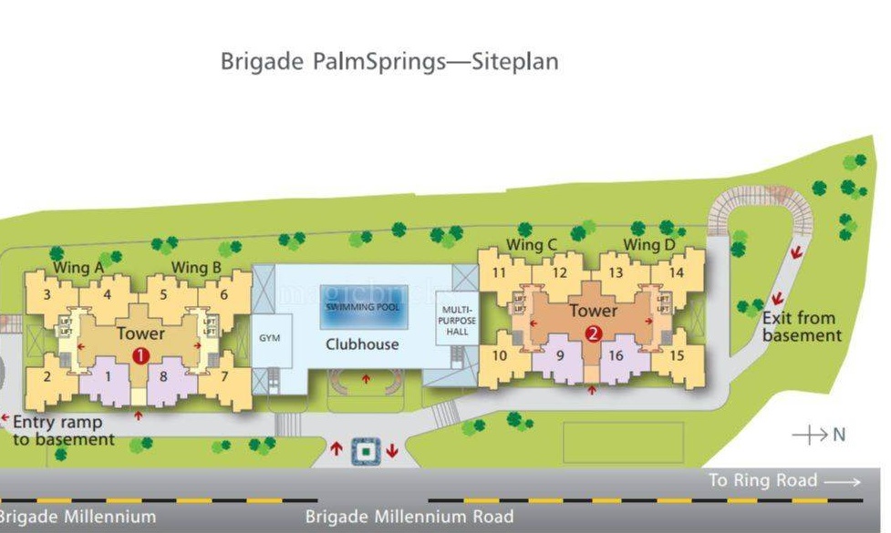 Brigade PalmSprings is a premium residential project located in South Bangalore, Bangalore. The project offers 216 units spread over 4 acres with sizes ranging from 1800 sqft to 1850 sqft. The project is strategically located and well connected with all the major points of the city. The project offers convenient shopping center for daily needs.