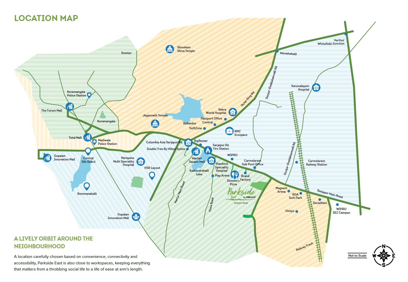 Brigade Parkside East is a well designed apartment complex that offers 282 units spread over 4 acres in South Bangalore. The project is located close to RGA Tech Park and Wipro SEZ, and is well connected to Outer Ring Road. The complex offers easy connectivity to Total Mall and Max Shopping Mall. The apartments are spread over 1144 sqft to 1251 sqft and are well designed with features like walkable distance to RGA Tech Park and Wipro SEZ, and easy connectivity to Total Mall and Max Shopping Mall.