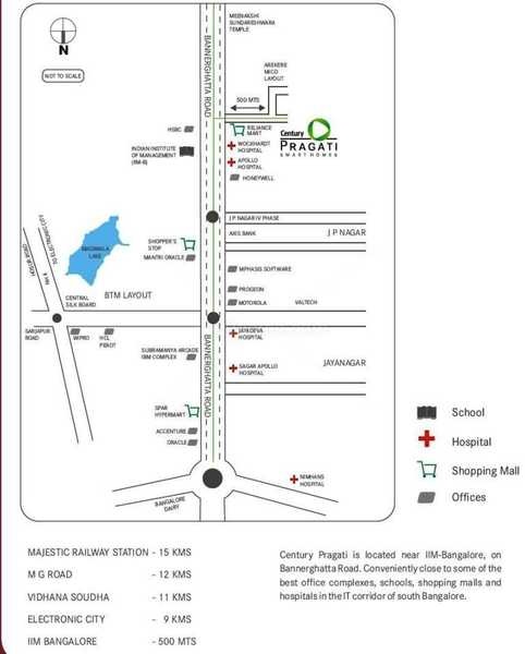 Century Pragati is a luxurious residential project located in South Bangalore, Bangalore. The project offers 72 units spread over an acre of land. The units are in the range of 834 sqft to 1438 sqft and come with all the modern amenities that one could ask for. The project is located near IIM Bangalore on Bannerghatta road, close to some of the best office complexes, schools and shopping malls in the city.