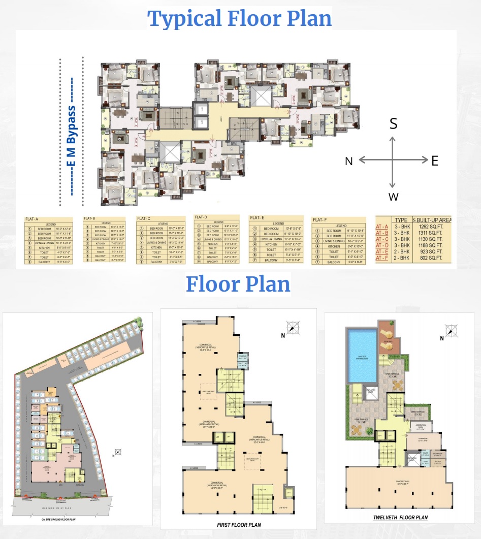 Ganguly 4Sight Vivante is a 60 Unit project spread over an area of 0.49 acres in South Kolkata, Kolkata. The floor plan of Ganguly 4Sight Vivante is as mentioned: