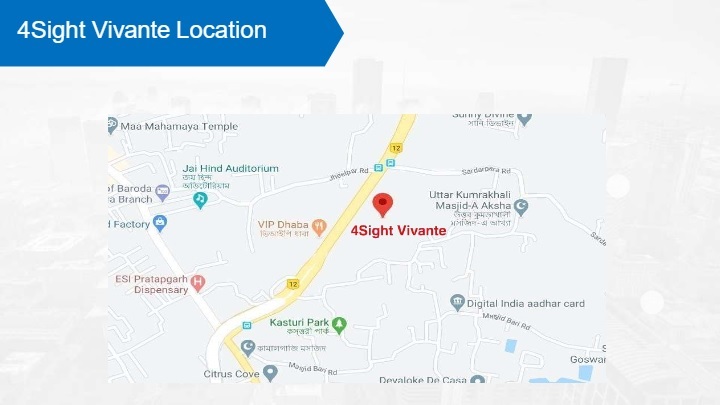 Ganguly 4Sight Vivante is a residential complex that offers excellent lifestyle and comfort for homebuyers. It is spread over 0.49 acres in South Kolkata and offers 60 units in 2BHK-3BHK apartments. The apartments have an estimated size of 802 sqft to 1187 sqft. Each apartment is designed to have excellent lighting and ventilation. The project is well connected to Khudiram Metro Station and Eastern Metropolitan Bypass.