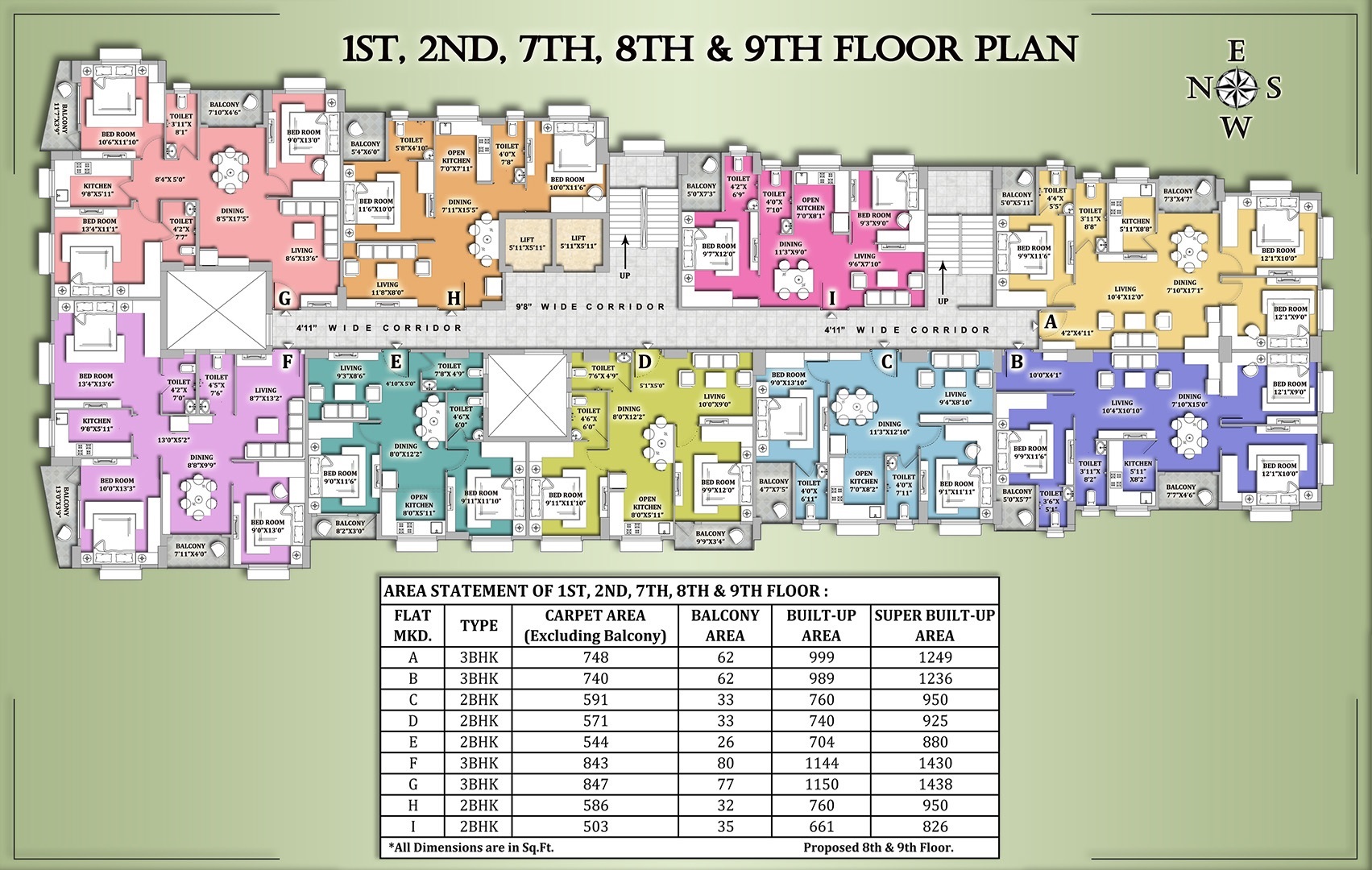 | 2 BHK 1065 Sq. Ft. Apartment | 1065 Sq. Ft.(Saleable) |