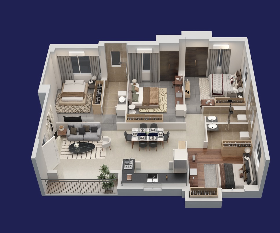 Kalim 22, a 22-unit residential project in central Kolkata, is a 0.3-acre development comprising 1648 sqft to 1790 sqft of luxurious 2 and 3 BHK homes. The floor plan of Kalim 22 is as follows: