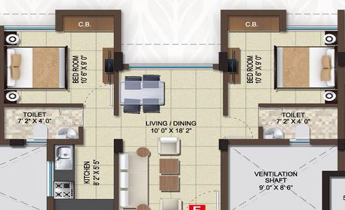| 2 BHK 775 Sq. Ft. Apartment | 775 Sq. Ft.(Saleable) |