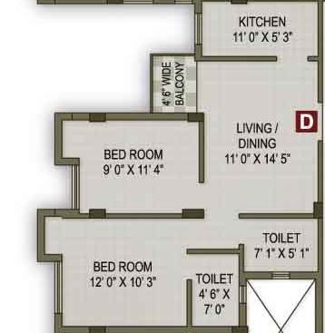 | 2 BHK 896 Sq. Ft. Apartment | 2 Bedrooms + 1 Kitchen | ₹ |