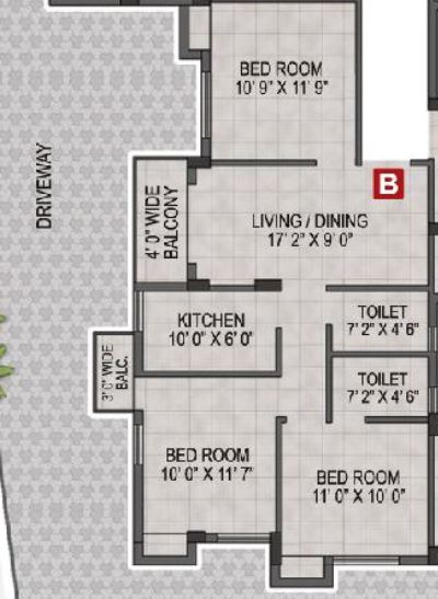 | 3 BHK 1097 Sq. Ft. Apartment | 1097 Sq. Ft.(Saleable) |