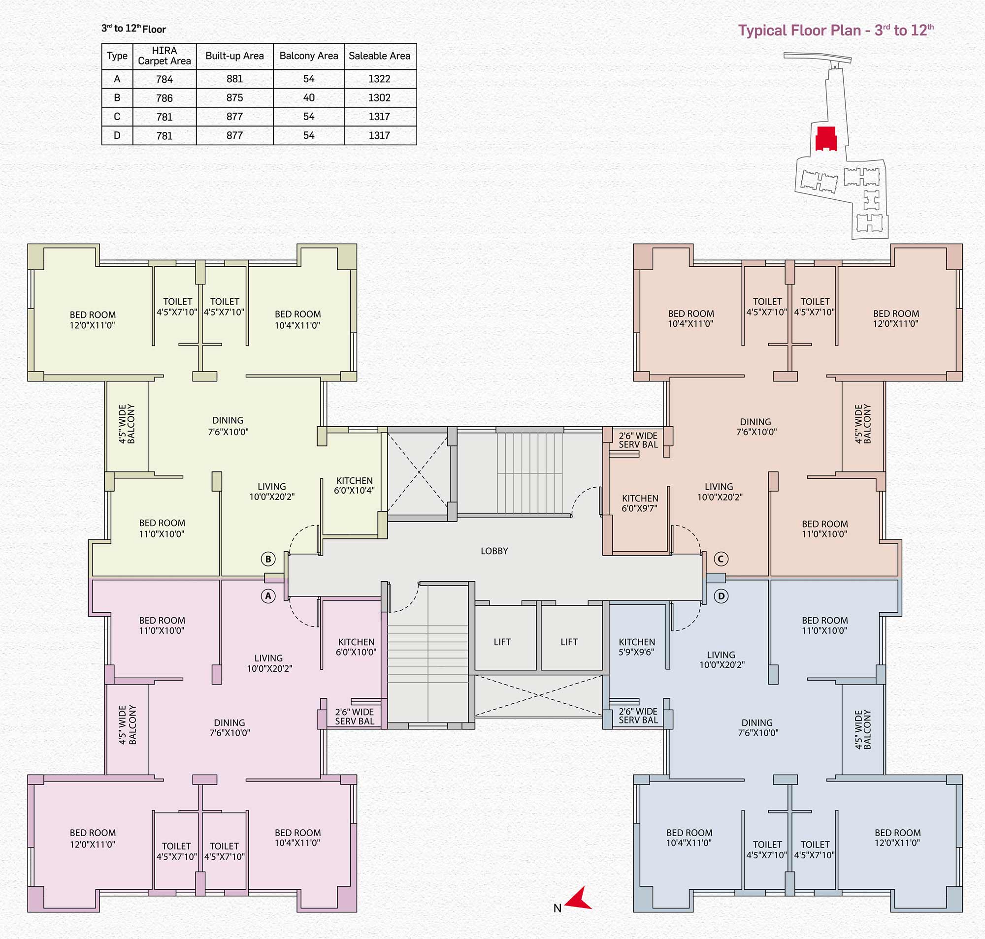 | 3 BHK 1322 Sq. Ft. Apartment | 1322 Sq. Ft.(Saleable) |