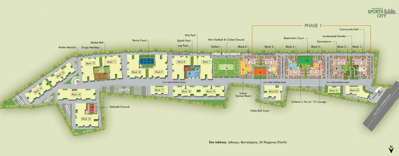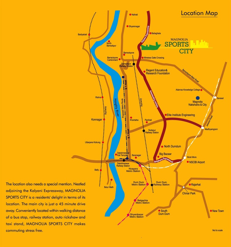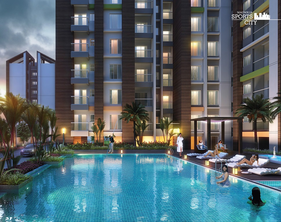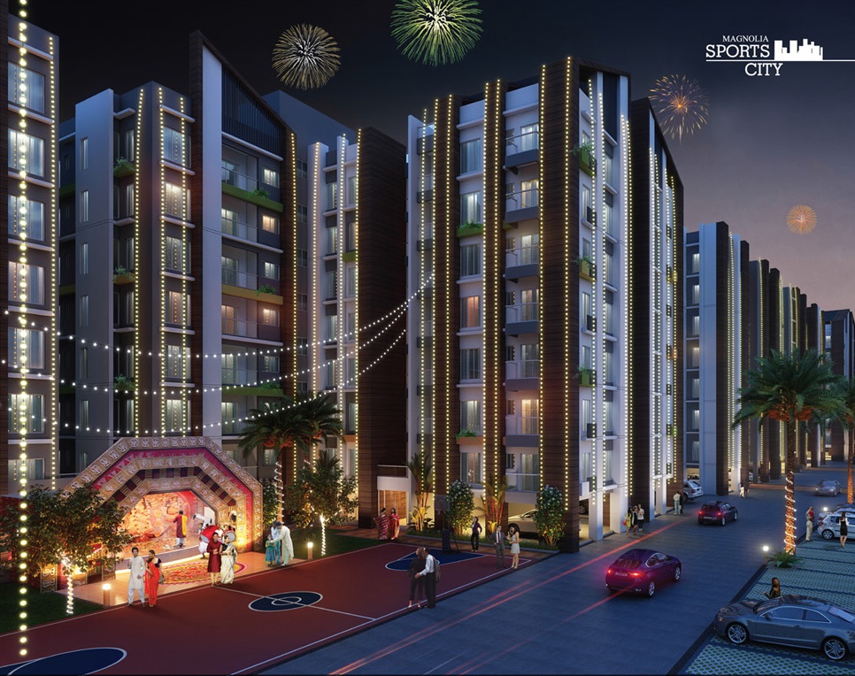Magnolia Sports City, North Kolkata, is a premium residential project located in the heart of the city. The project offers 2BHK-3BHK residences that come with smart home automation and premium specifications with sizes ranging from 670 sqft to 1134 sqft. The project features apartments having Maximum Living area and comes with extensive views of hills, open green spaces and a riverside too. This provides a perfect escape from the hustle and bustle of the city. No other township in the locality can boast of such a feature-rich location. The project is located in the heart of the city and enjoys a strategic location that makes it a preferred choice for those looking for an upscale lifestyle. The project is aesthetically designed structures coupled with rich landscaped area that provides a refreshing and peaceful environment.