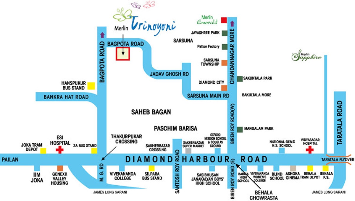 Merlin Trinoyoni is a new age luxurious apartment project that offers an unparalleled lifestyle experience. Situated in South Kolkata, Merlin Trinoyoni is spread over a sprawling 200 acres, comprising 425 units of 4 different sizes – 2BHK, 3BHK and 4BHK. These apartments are specially designed to offer an unparalleled lifestyle experience with easy access to Majerhat Railway Station, well connected to Diamond Harbour Road, and a host of other important areas.