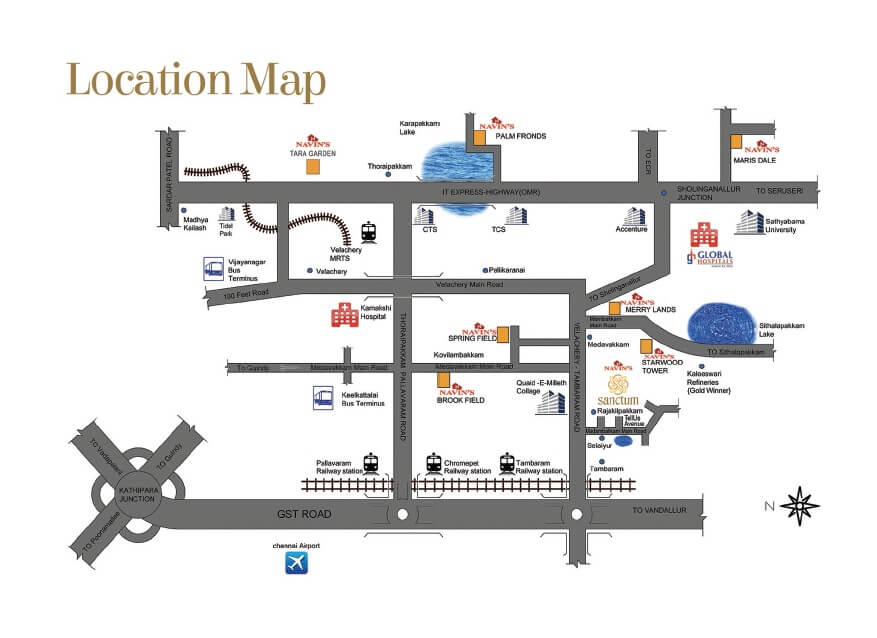Navins Sanctum is a luxury project located in Perungudi, Chennai. The project offers 60 units spread over an area of 0.97 acres with 3BHK-3BHK residences. The residences come with 963 sqft to 1709 sqft sizes. The project offers green and open spaces that make it a perfect place to live. The project is close to important landmarks like Anna University, Chennai Central Railway Station, and many other popular destinations.
