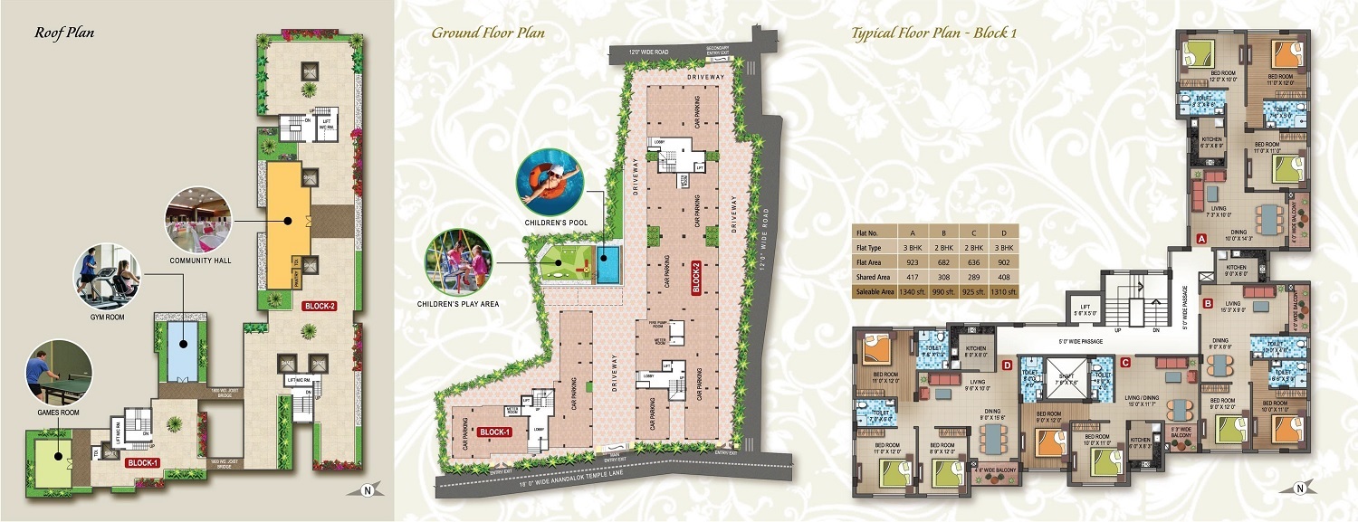 | 3 BHK 1340 Sq. Ft. Apartment | 1340 Sq. Ft.(Saleable) |