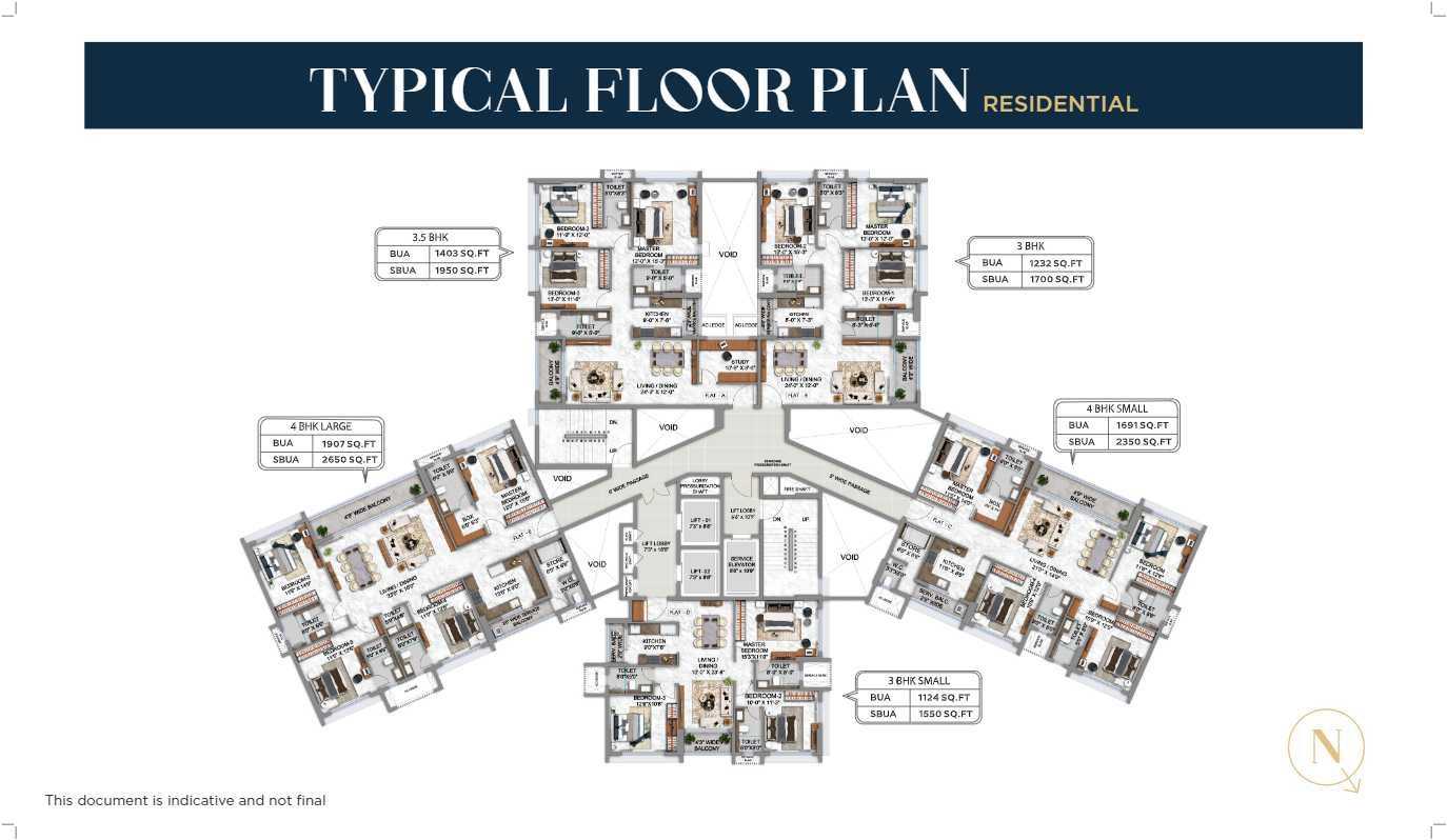 | 4 BHK 2350 Sq. Ft. Apartment | 4 Bedrooms | ₹ 1.74 Cr |
