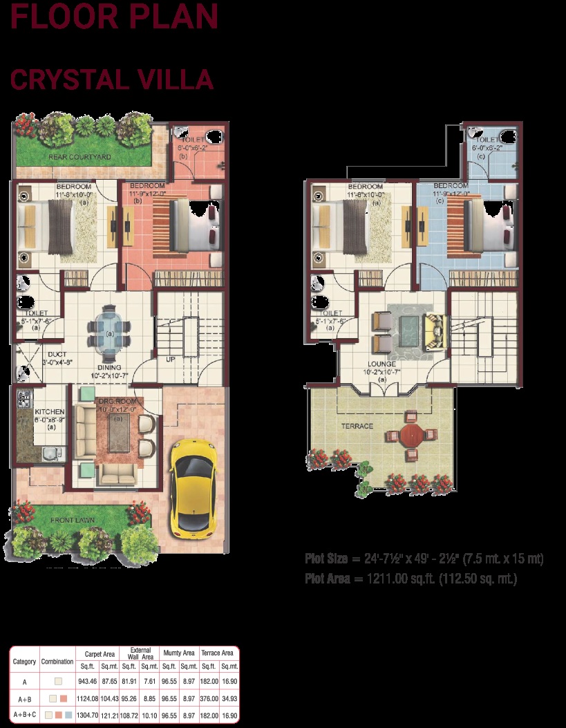 | 4 BHK 1211 Sq. Ft. Villa | 1211 Sq. Ft.(Saleable) |