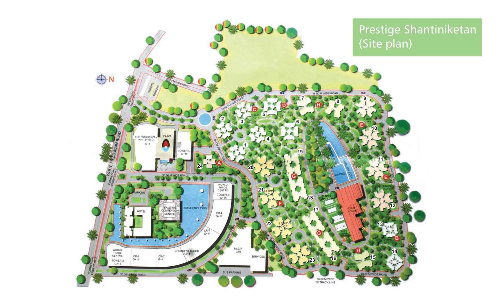 Prestige Shantiniketan, East Bangalore is a world-class residential project launched by Prestige Developers situated in East Bangalore, Bangalore. The gated project consists of luxurious 3BHK-4BHK residences that come with efficient and luxurious design that caters to your needs of leisure, recreation and celebration. Spread across 105 acres, the residential apartments offer 1165 sqft to 4036 sqft sizes. The project features apartments having Maximum Living area and comes with lush green surroundings and exquisite landscaping around the residential units. The project is well connected to Whitefield Main Road, and ITPL Main Road.