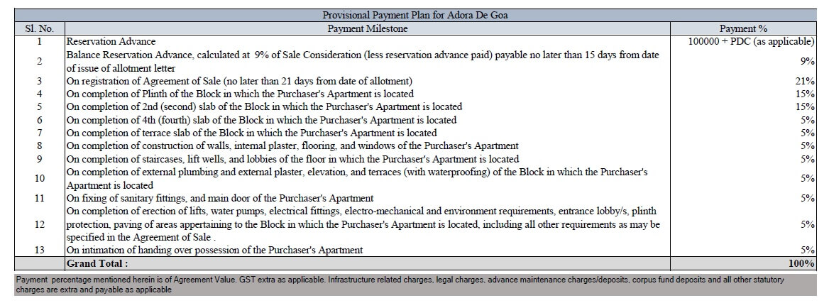 Puravankara Adora De Goa, located in Goa Central offers 1 BHK-2 BHK-3 BHK homes with sizes ranging from 100 sqft to 350 sqft. The floor plan of Puravankara Adora De Goa is as follows: