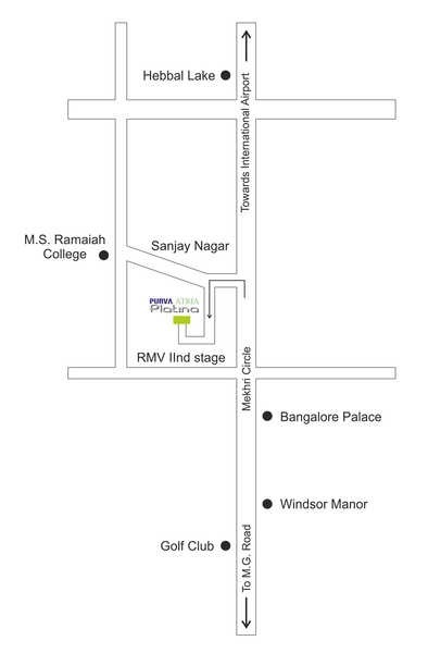Purva Atria Platina is a luxurious residential complex that offers luxurious apartments in a gated community. The project offers 70 units spread over 2.1 acres. The apartments are spacious, well ventilated and Vastu compliant. The project is close proximity to Mekhri circle, Hebbal Flyover and MG Road, making it easily accessible to social infrastructure in prime locations like The Lalit Ashok, ITC Windsor, Taj West End, Le Meridien.