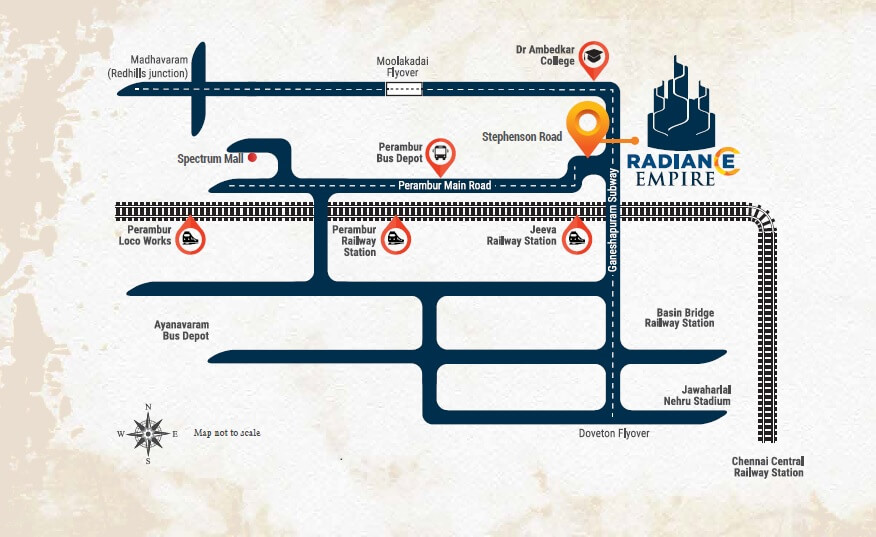 Radiance Empire is a brand new residential project that offers 274 units spread across 3.18 acres in Thiruvikanagar, Chennai. The project offers a wide range of 3BHK and 4BHK apartments that come in sizes from 602 sqft to 1499 sqft. The project also features a good facility clubhouse that offers a range of amenities such as a gymnasium, a swimming pool, a children’s play area, and a garden. The project is well connected with all the important areas of Chennai, and is also close to various commercial establishments.