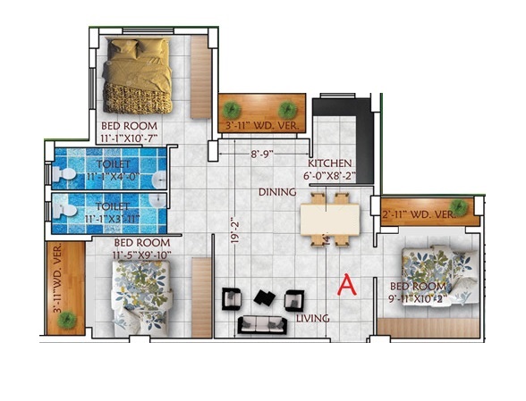 | 3 BHK 1120 Sq. Ft. Apartment | 1120 Sq. Ft.(Saleable) |