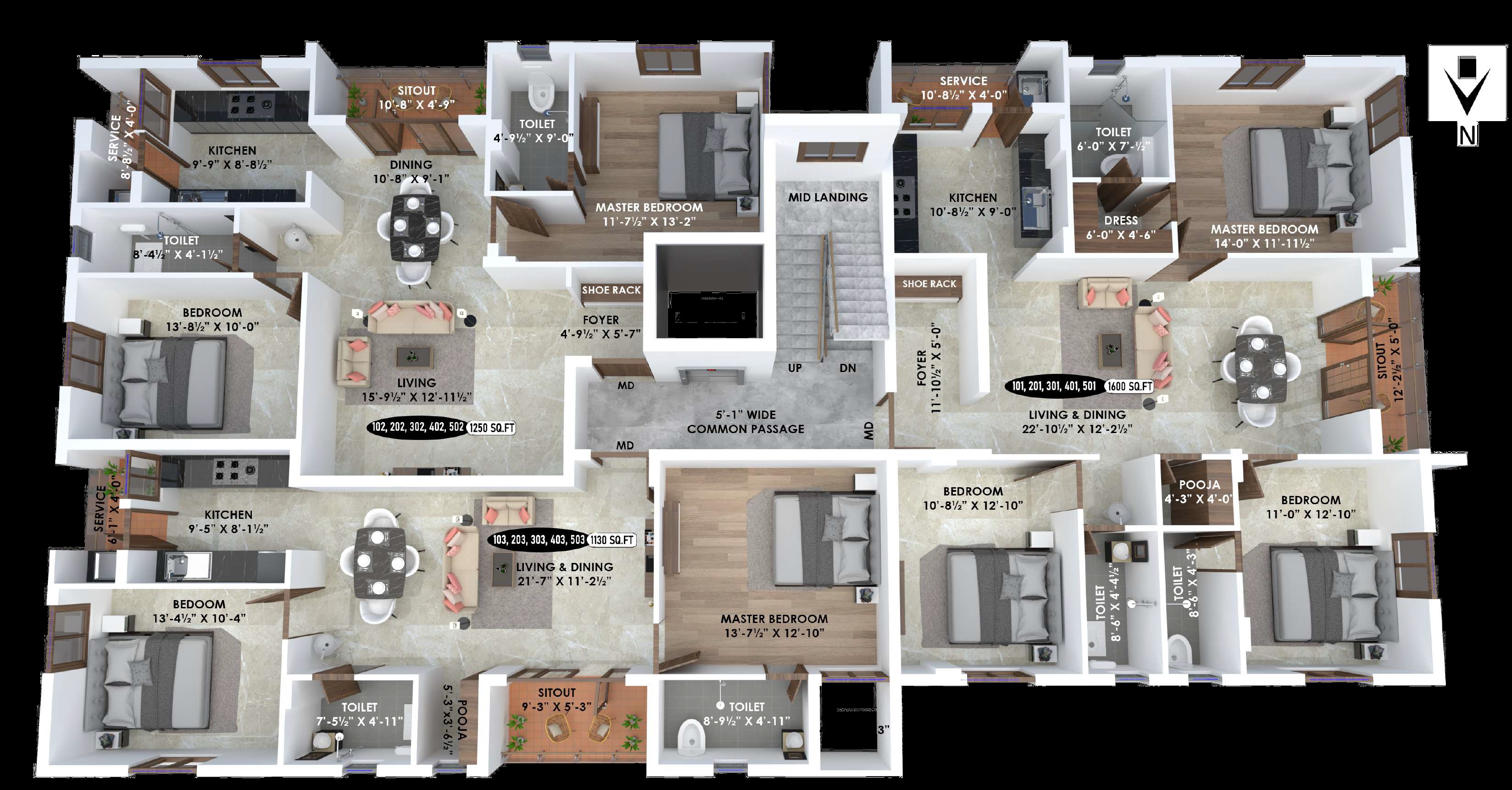 | 3 BHK 1600 Sq. Ft. Apartment | 1600 Sq. Ft.(Saleable) |