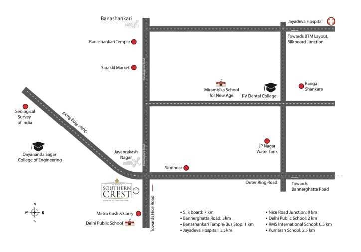 Shriram Southern Crest, Bangalore, is a premium housing project that brings an extraordinary living experience. Situated in the heart of South Bangalore, the Shriram Southern Crest project offers 400+ lavishly designed units spread across 3.6 acres of land. This project in JP Nagar is developed for people who value the South Bangalore lifestyle. The Shriram Southern Crest addresses the realities of urban living and involves apartments designed to ensure maximum ventilation, privacy and natural light.