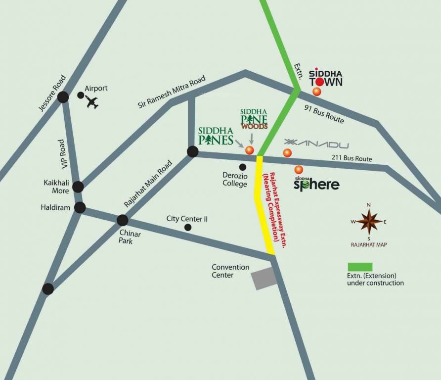 Siddha Pines is an upcoming residential project in East Kolkata,Kolkata. It offers 625 units spread over 5 acres of land. The project offers 3BHK, 4BHK and 5BHK apartments that are specially designed to have excellent lighting and ventilation. The apartments are also conveniently located near a shopping center for daily needs. The project is well connected to Rajarhat Road and other important areas of the city.