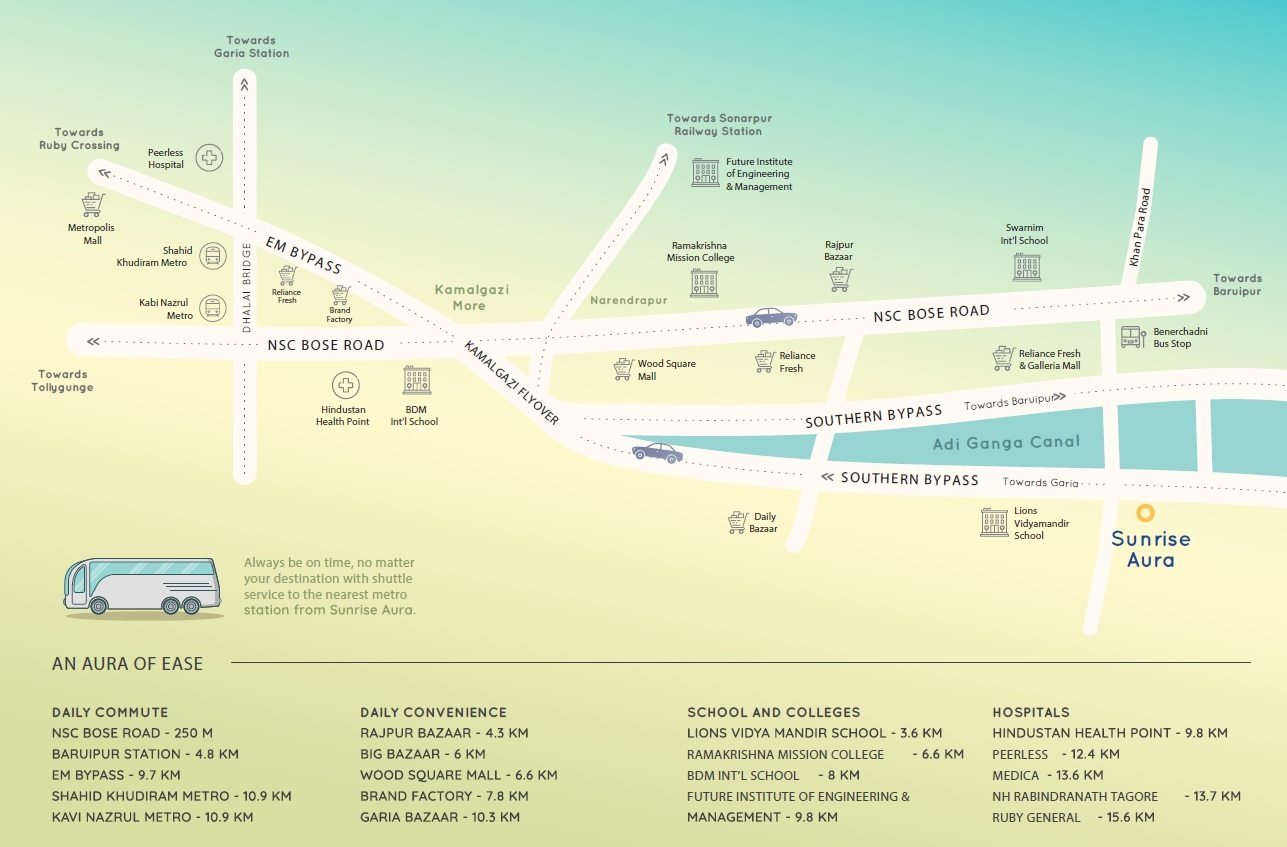 Sureka Sunrise Aura is a luxurious township located in South Kolkata,Kolkata. It offers 232 units spread over an area of 8.04 acres. The township offers 2 BHK-3 BHK apartments that come with 677 sqft to 964 sqft sizes. The project features apartments having Excellent lighting and ventilation, which makes it a perfect place to live in. The township is well connected to Eastern Metropolitan Bypass and is close to Swami Vivekananda Institute Of Science and Technology.