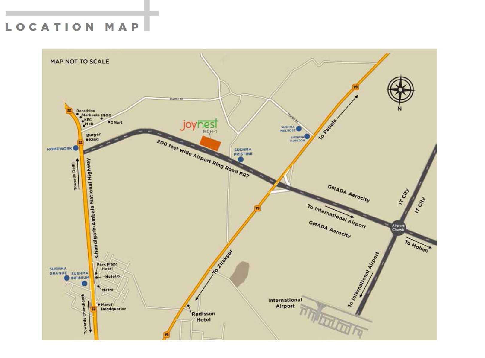 Sushma Joynest MOH is an a beautiful Project by Sushma Buildtech who are one of the renowned developers in Chandigarh. It is located in Bir Chhat, Mohali and well connected by major road(s) like Ambala Chandigarh Expressway, Aerocity Road, NH7. Sushma Joynest MOH is spread across 10.75 acre. The Project has 1065 Units. The status of the Project is Ready to Move. The flat units on sale are available in various configurations like 2 BHK flats at a price of Rs 66.50 L with Property size of 1080 Sqft.