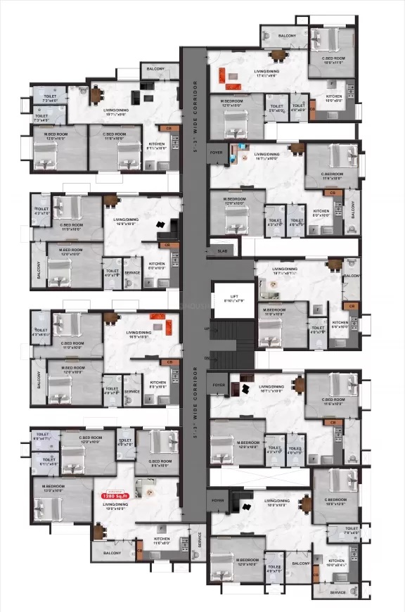 | 2 BHK 1085 Sq. Ft. Apartment | 1085 Sq. Ft.(Saleable) |