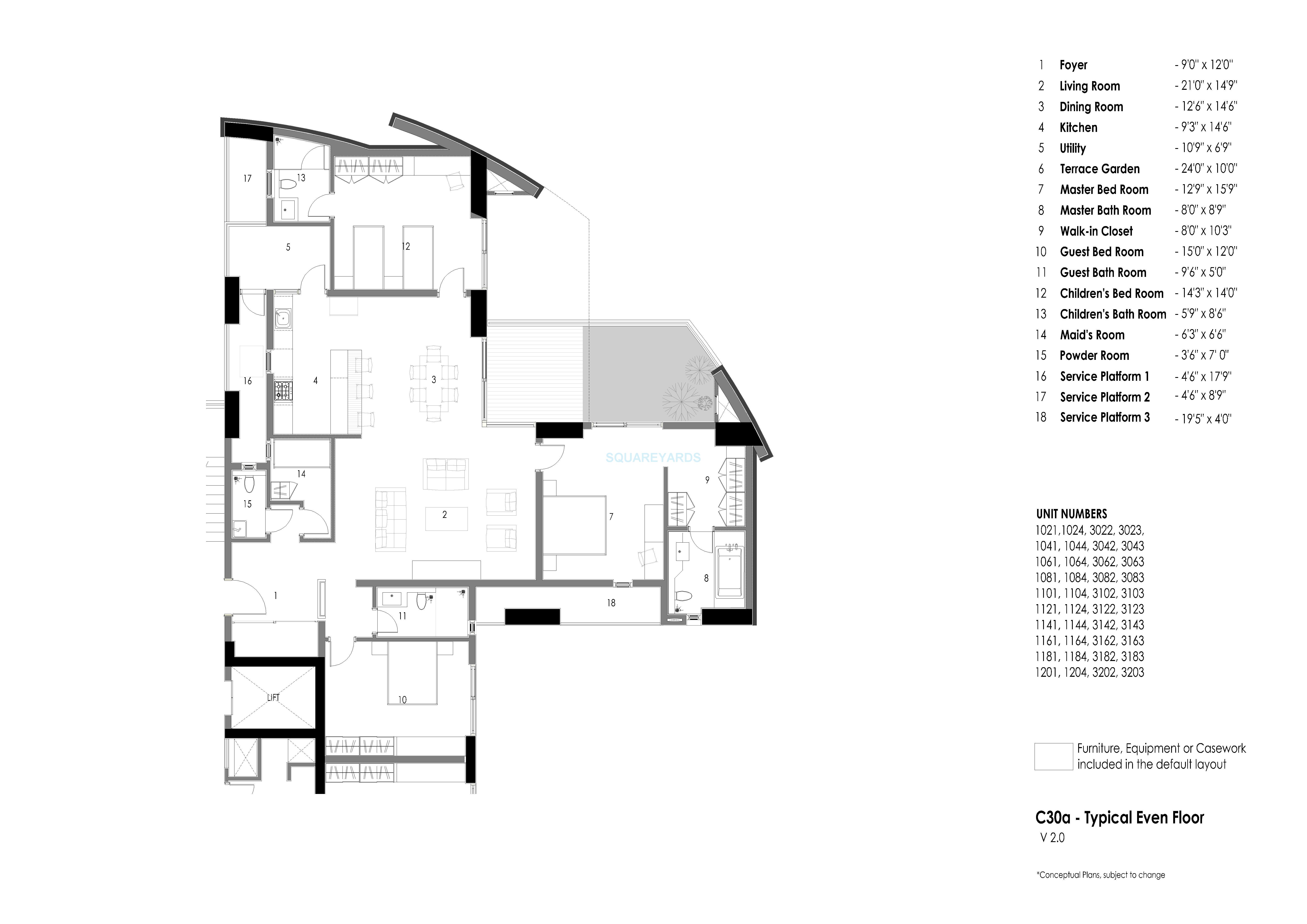 | 3 BHK 2105 Sq. Ft. Apartment | 2105 Sq. Ft.(Saleable) |