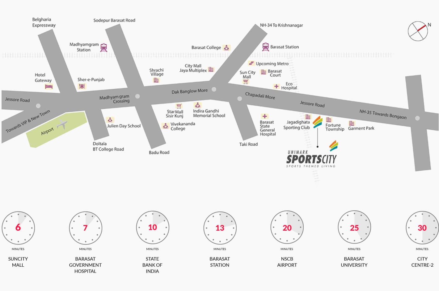 Unimark Sports City is a world-class sports complex that offers luxurious living with world-class amenities. The project is located in North Kolkata,Kolkata and offers 2BHK-3BHK residences spread over 764 sqft to 984 sqft. The residences come with grand entrance lobby, advanced security features, large selection of sports, and much more. The project is strategically placed in the heart of the city and offers easy access to all the major tourist attractions.