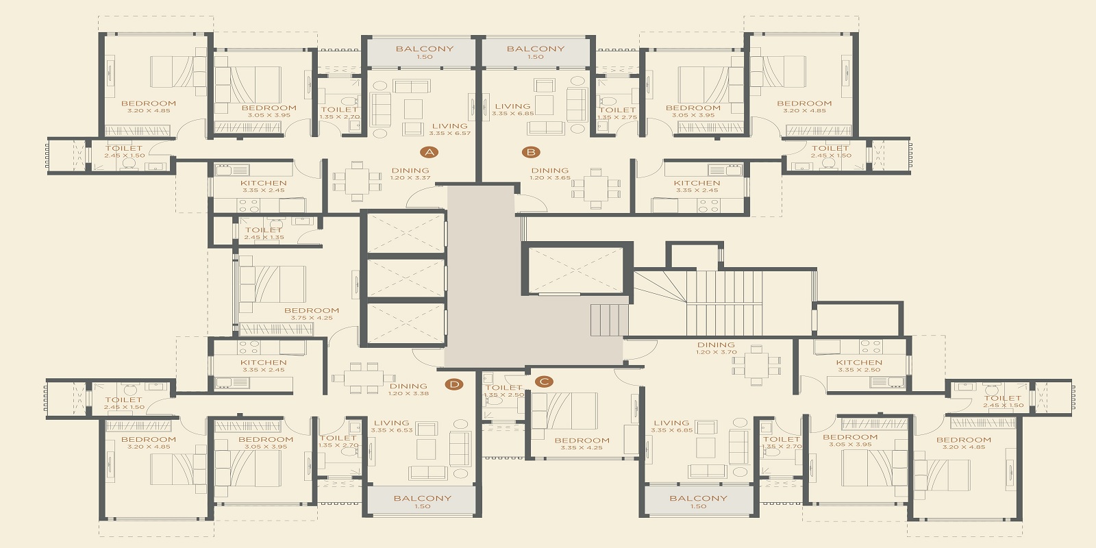 | 3 BHK 1161 Sq. Ft. Apartment | 1161 Sq. Ft.(Carpet) |