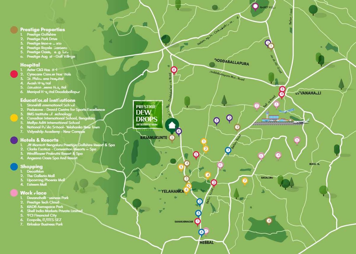 Prestige Dew Drops is an premium Project located in Rajanukunte, North Bangalore and well connected by major road(s) like Doddaballapur Road. The total area in which Prestige Dew Drops has been built is 5 acre. This project has been developed by Prestige who are one of the reputed developers in the Bangalore. The Project current status is New Launch. It has 25 Units. The Apartment units are available in various configurations like 3 BHK Flats at a minimum price of Rs 4.00 Cr and maximum price of Rs 4.00 Cr with Property Size ranging from 3508 Sqft to 3540 Sqft, 4 BHK Flats at a minimum price of Rs 5.23 Cr and maximum price of Rs 7.45 Cr with Property Size ranging from 4942 Sqft to 5868 Sqft.