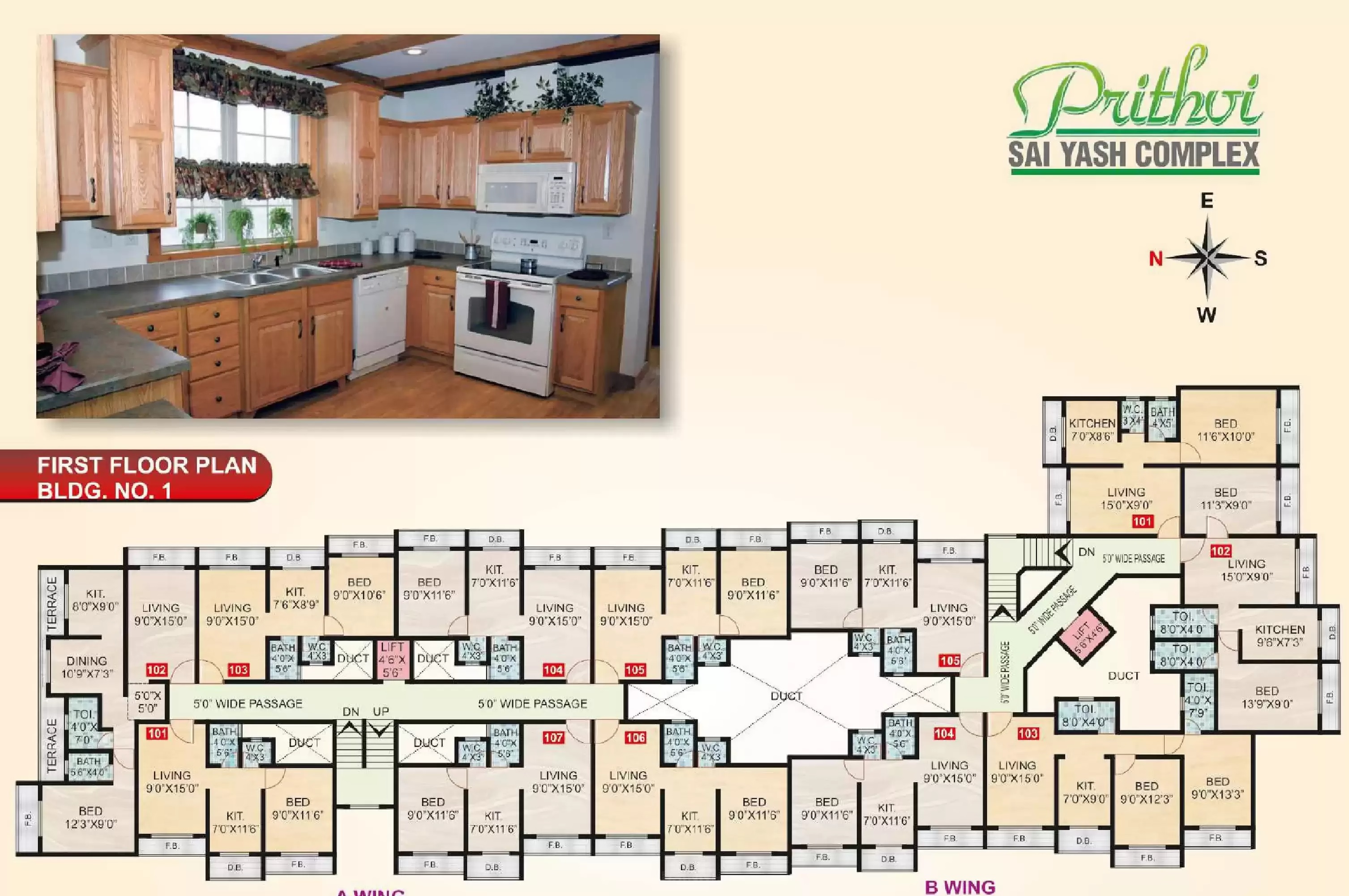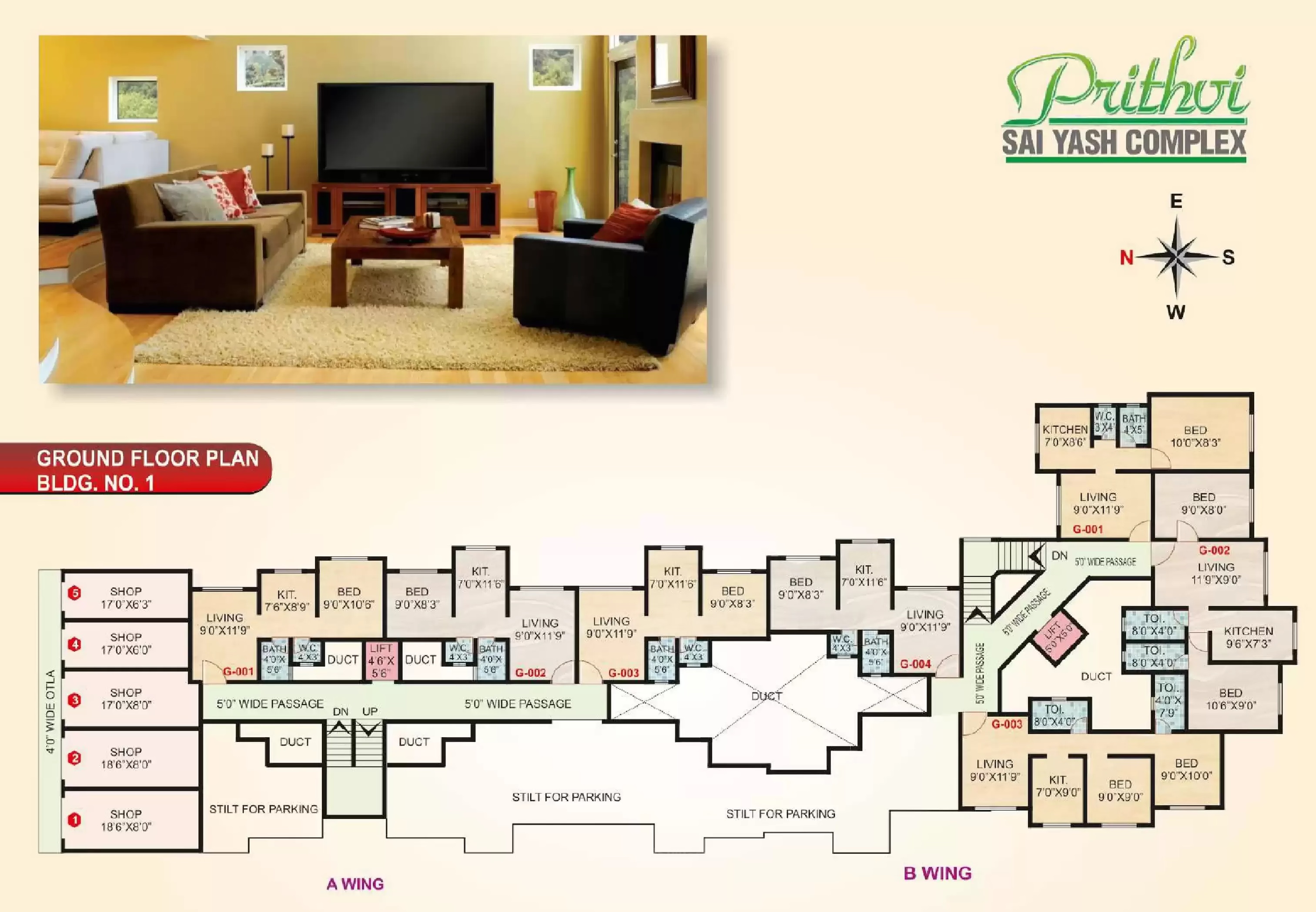 Prithvi Sai Yash Complex is a 55-unit township spread over an area of 0.65 acres at Mira Road and Beyond, Mumbai. It offers 1, 2 & 3 bedroom apartments with 307 sqft to 495 sqft of living space. The Floor Plan of Prithvi Sai Yash Complex is as follows: