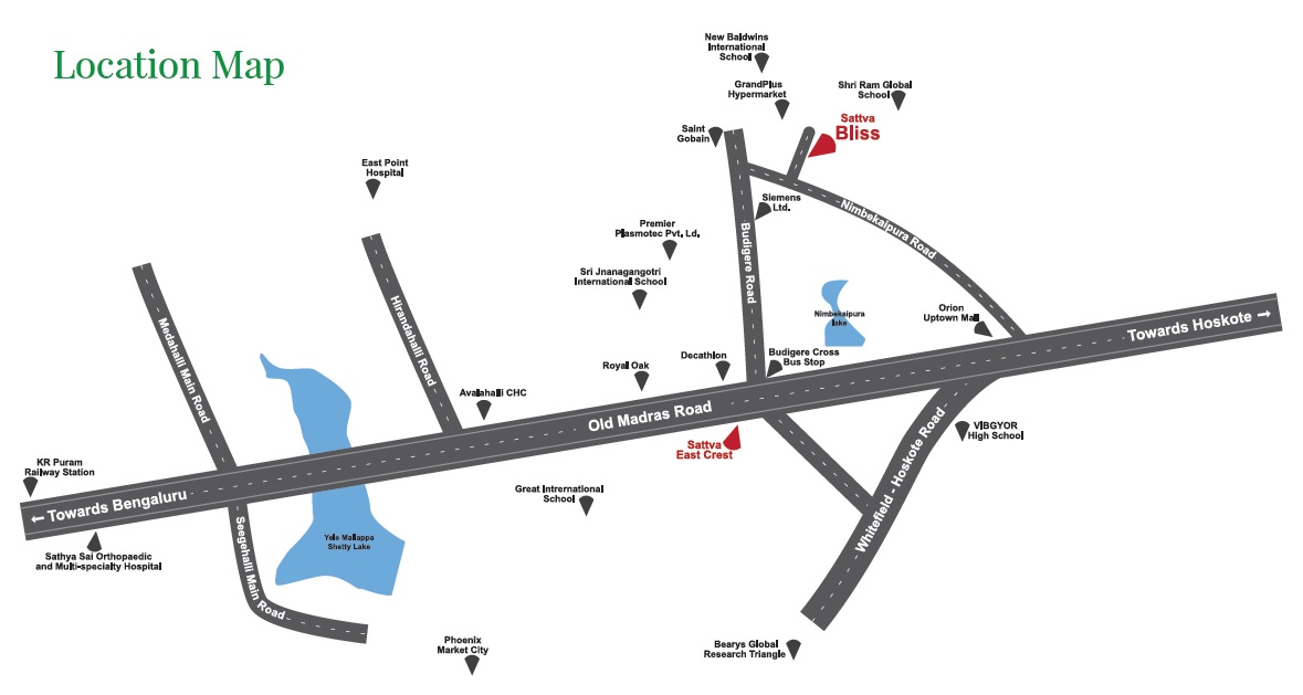 The address for Salapuria Sattva Bliss is Nimbekaipura Rd, off Old Madras Road, Bengaluru, Karnataka 560049.