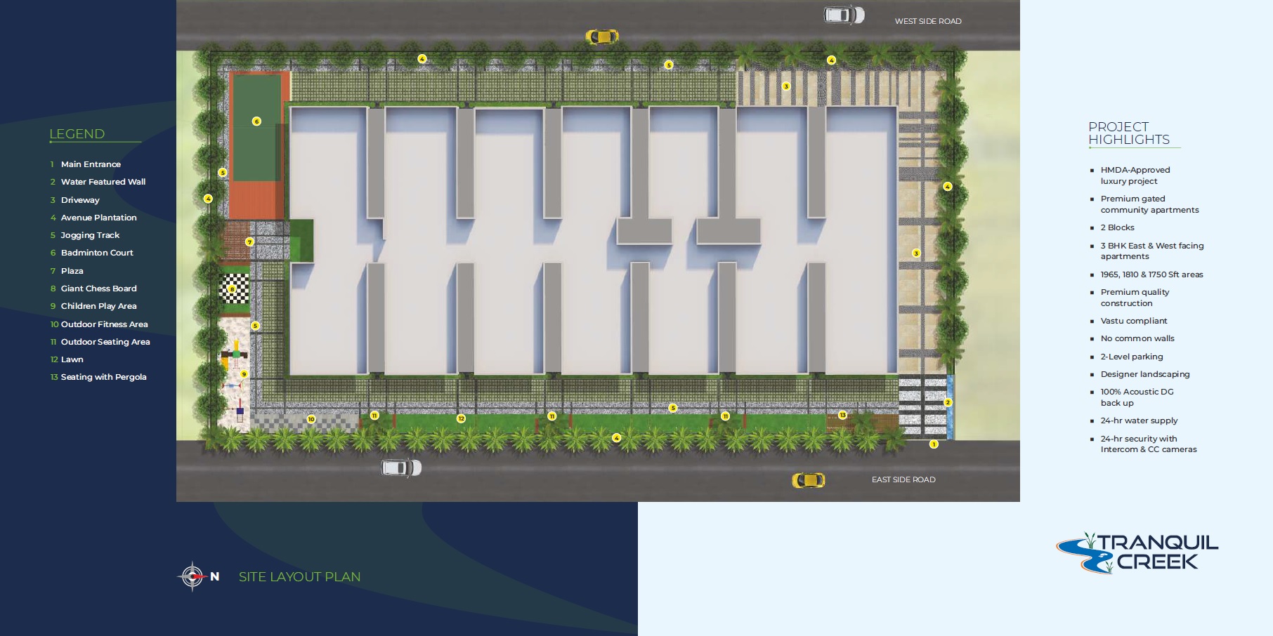 Tejase Tranquil Creek, Hyderabad is a luxurious township that offers 78 units ranging from 1.1 acres to 3 BHK. The Floor Plan of Tejase Tranquil Creek is as mentioned: