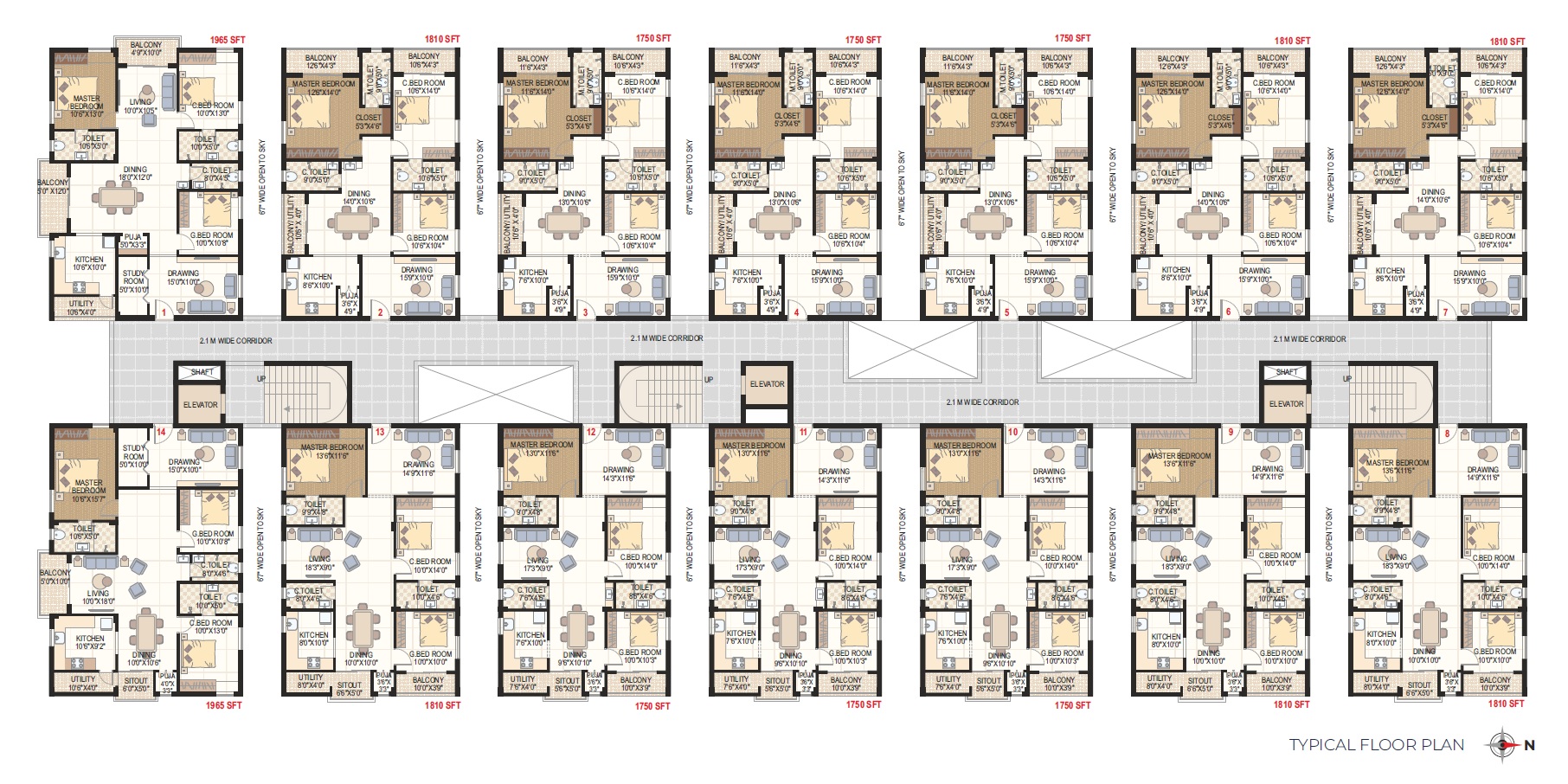 | 3 BHK 1965 Sq. Ft. Apartment | 1965 Sq. Ft.(Saleable) |