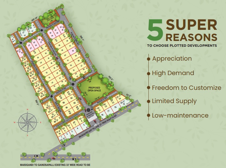 Magnificent 3, 4, and 5 BHK residential villa plots are available in Zoltan Highway Green, Hyderabad.